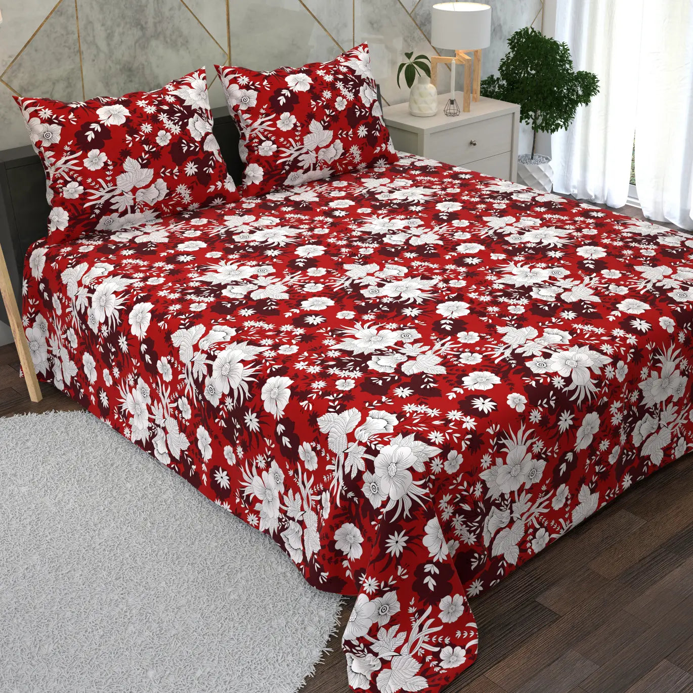 Transform your bedroom with the bold, vibrant red floral design of this 3-piece bedsheet set. Crafted from high-quality polycotton fabric, it offers a soft, breathable feel for a restful night's sleep. The rich red tones and intricate floral pattern add a touch of elegance and warmth to any room, while the durable, easy-care fabric ensures long-lasting comfort. Perfect for those seeking both style and functionality, this bedsheet set is an ideal addition to your home.