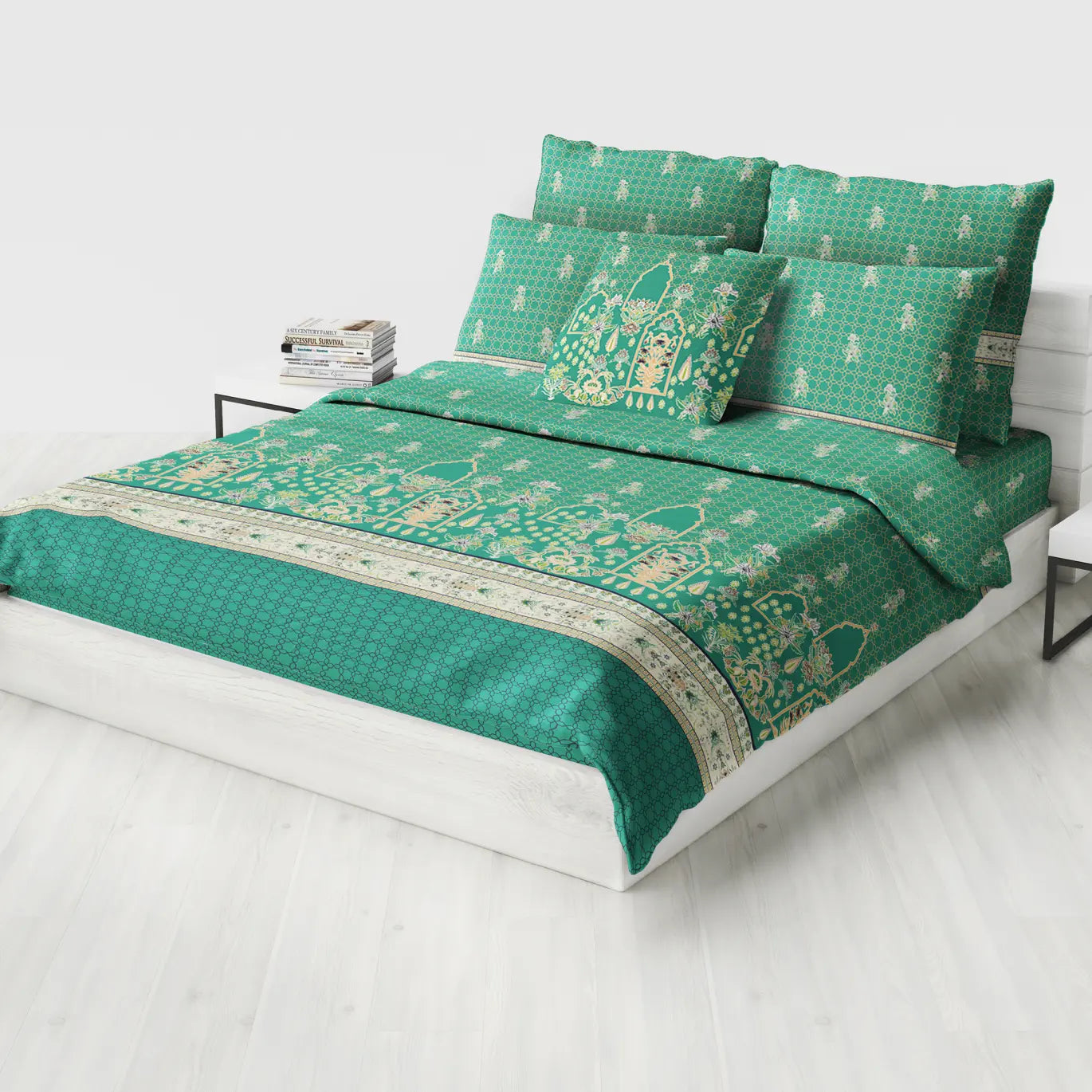 Add a touch of elegance to your winter bedding with the Deep Teal Floral & Geometric Motifs Winter Comforter. Made from soft, breathable PolyCotton fabric, this comforter features a stunning blend of floral and geometric designs in rich deep teal tones. Perfect for the colder months, it provides warmth and comfort while enhancing the aesthetic of your room. Experience cozy nights and stylish decor with this luxurious winter comforter set.